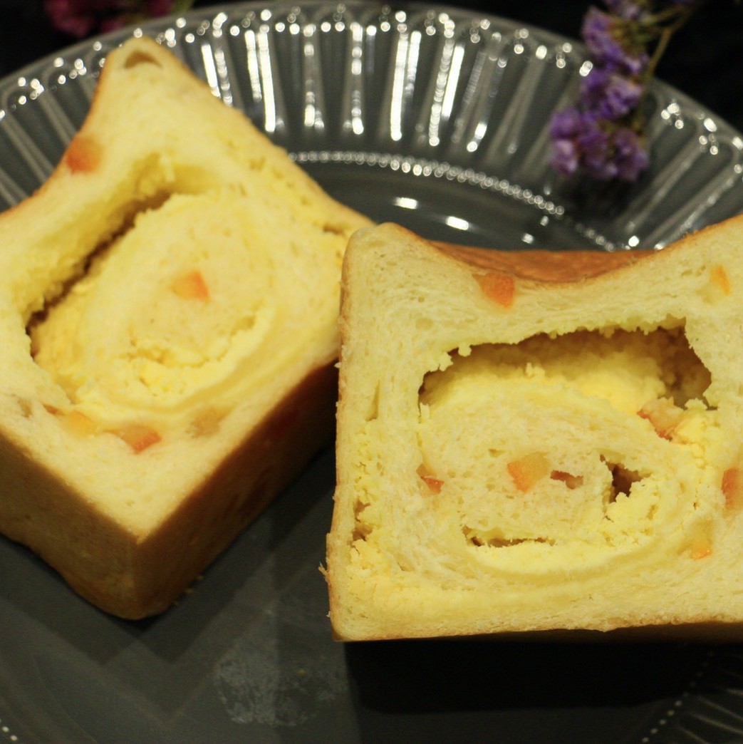 泡了萊姆酒的蜜製橙皮,濃厚的橘香味和麵糰揉合一起,搭配特製奶酥,橙皮香讓您不膩口的感受生吐司不一樣的口感。